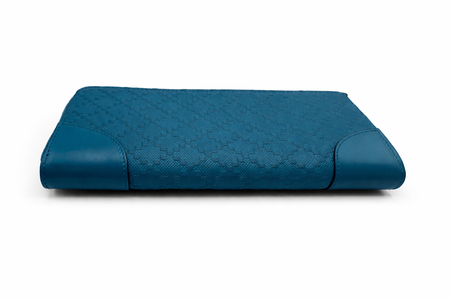 A timeless and elegant Gucci zip-around wallet crafted in a rich teal tone with Gucci’s signature textured canvas and smooth leather trim. Designed for both luxury and everyday functionality, this piece offers ample storage while maintaining a sleek, structured silhouette.